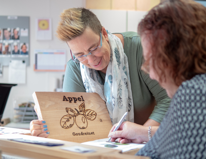 Cliënten maken samen met een kunstenaar en ondersteuning van ons mooie en bijzondere producten, onder de noemer: Design X Ambacht. De producten worden op verschillende plekken verkocht, bijvoorbeeld in het Rijksmuseum in Amsterdam.