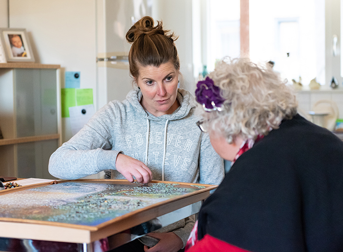 Mensen met een matige tot zeer ernstige verstandelijke beperking hebben een ontwikkelingsleeftijd tussen de 1,5 en 6 jaar en soms hebben ze psychische problemen. Voor hen is een veilige woonomgeving, goede dagbesteding en ruimte voor groei en ontwikkeling van belang. Werken met deze doelgroep betekent op elk moment naar hen kijken, samen leren én grenzen stellen.