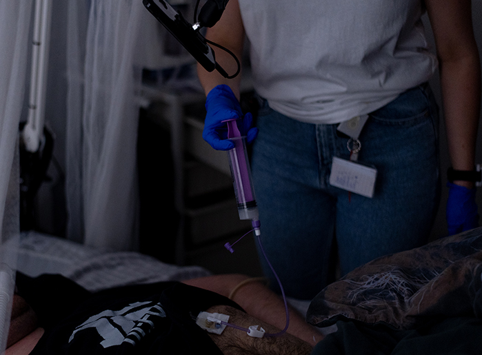 Midden in de nacht ontvang je een melding van de centrale nachtzorg: een cliënt is onrustig. Je begeeft je naar haar kamer en ontdekt dat ze een nare droom heeft gehad. Met een glas water, geruststellende woorden en een hand op de schouder bied je troost. Daarna vervolg je je route naar een andere cliënt, bij wie je eerder op de avond hebt afgesproken om de bloedsuiker te meten vanwege eerdere verhoogde waarden.