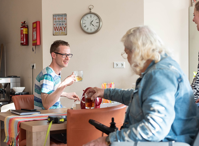 Je werkt als diëtist samen met twee directe collega’s. Daarnaast werk je multidisciplinair samen met onder andere logopedisten, ergotherapeuten, fysiotherapeuten, gedragskundigen, maatschappelijk werkers en artsen. Bovendien heb je met begeleiders/verpleegkundigen veelvuldig overleg over het toepassen van je adviezen in de dagelijkse praktijk.