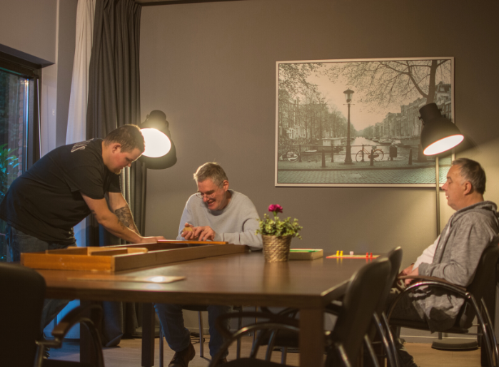 Op Hartenkoning 14, op woonpark 's Koonings Jaght wonen 14 mensen met een Ernstige Verstandelijke Beperking. Het zijn mensen met een sterk karakter die een begeleiding vragen die bij ze past. Dat betekent dat wanneer jij als begeleider aan de slag gaat je de tijd moet nemen om de mensen te leren kennen en hun vertrouwen te geven. Dat doe je door naar de mens te kijken, niet naar het gedrag. Er wordt veel tijd gemaakt voor uitstapjes, elk weekend staat er wel een bezoek aan bijvoorbeeld een pannenkoekrestaurant of nabijgelegen Van der Valk restaurant op het programma. Of ‘s avonds een rugzak inpakken met koffie/thee en bekers en hup de hei op! Daarnaast wordt er elk jaar een vakantie met de cliënten georganiseerd.